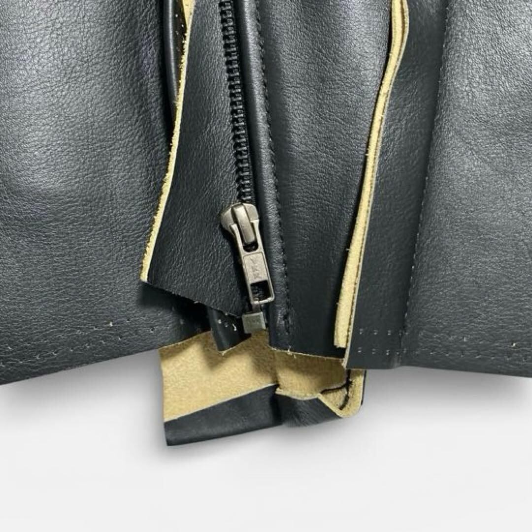 全体的に革の擦れがあります。ポケットのボタンが変形しています。開閉に問題はないです。