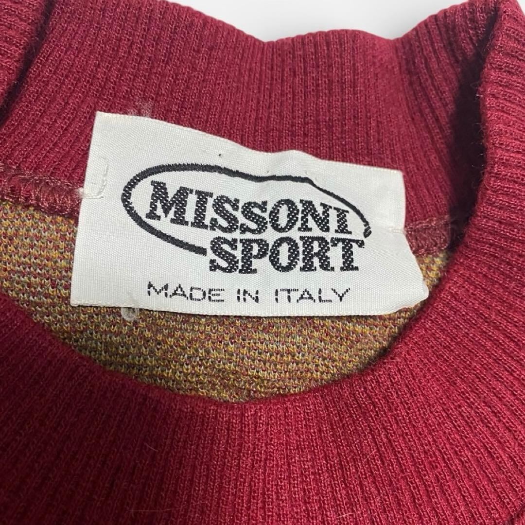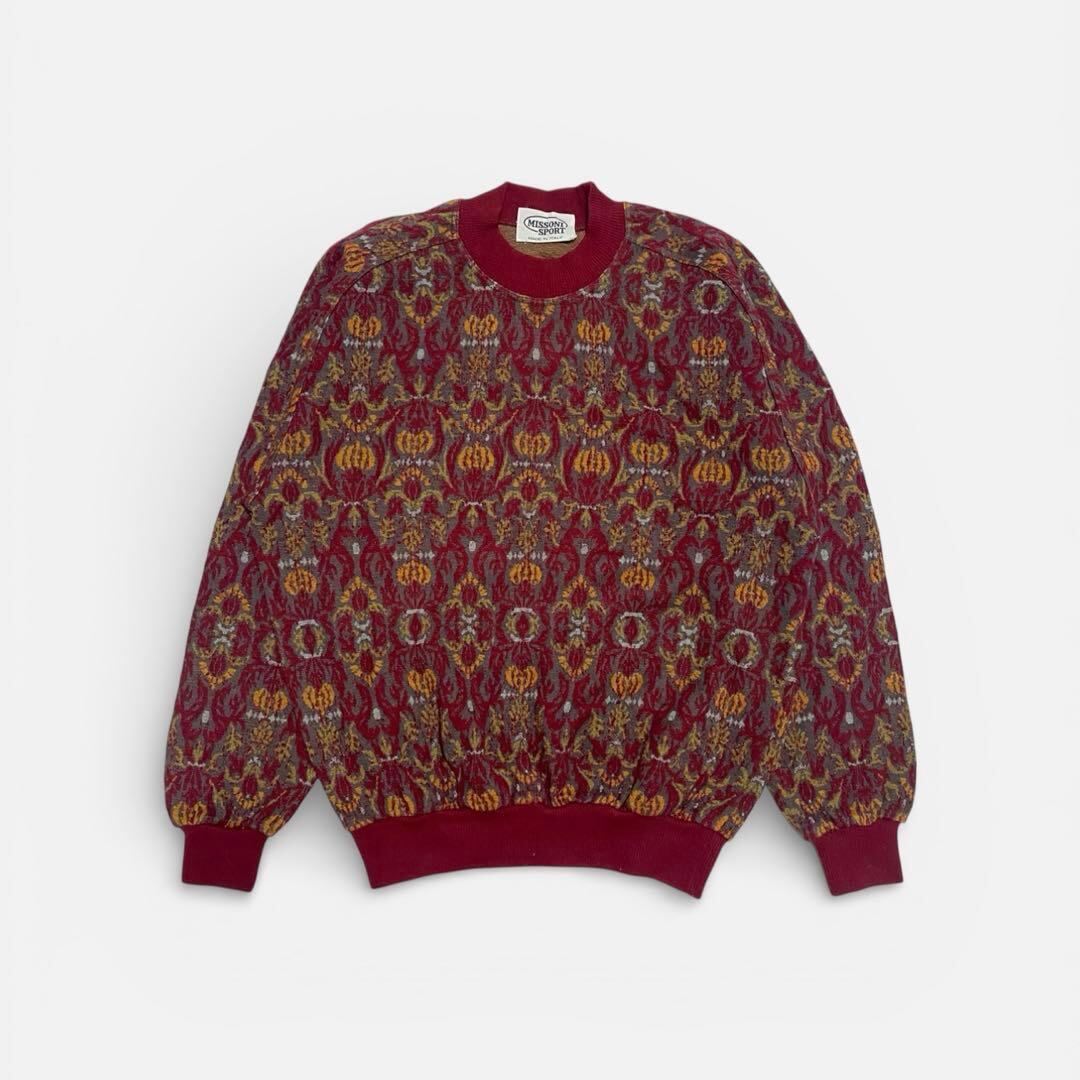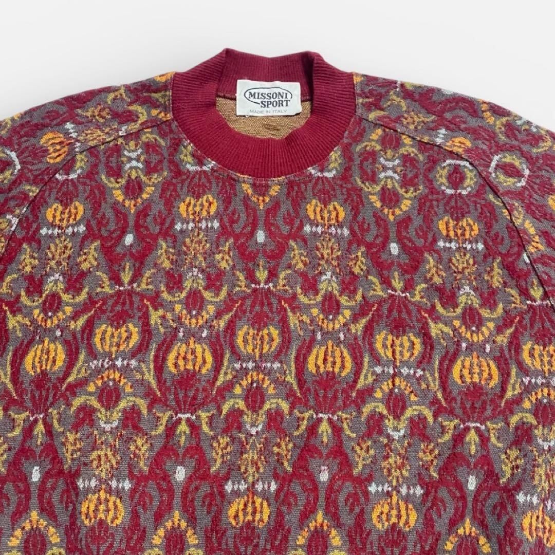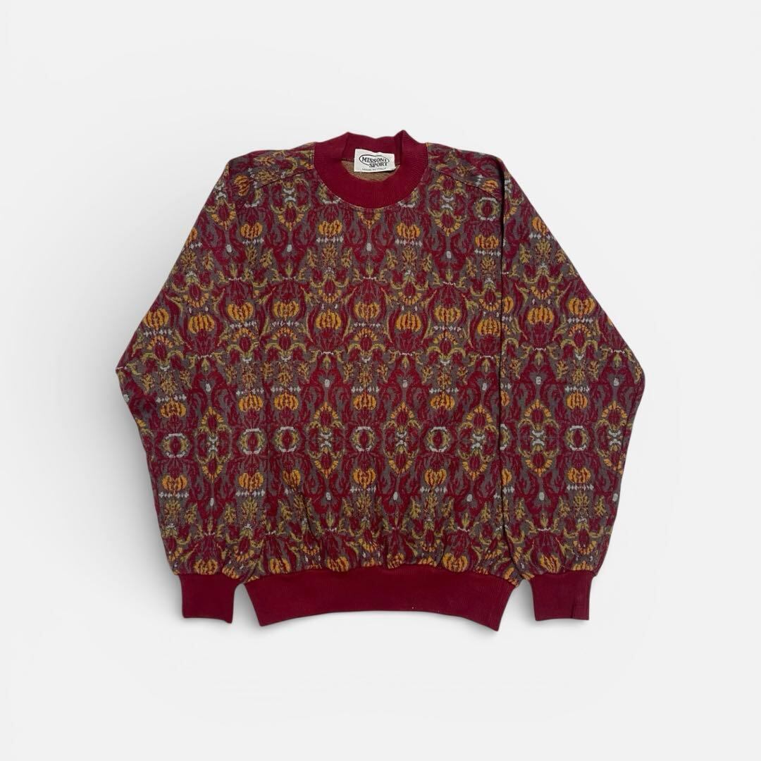 90s MISSONI 総柄ニット メンズS ウール ワインレッド